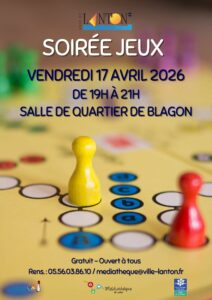 L’espace ludothèque de la médiathèque de Lanton vous propose une soirée jeux conviviale, gratu…